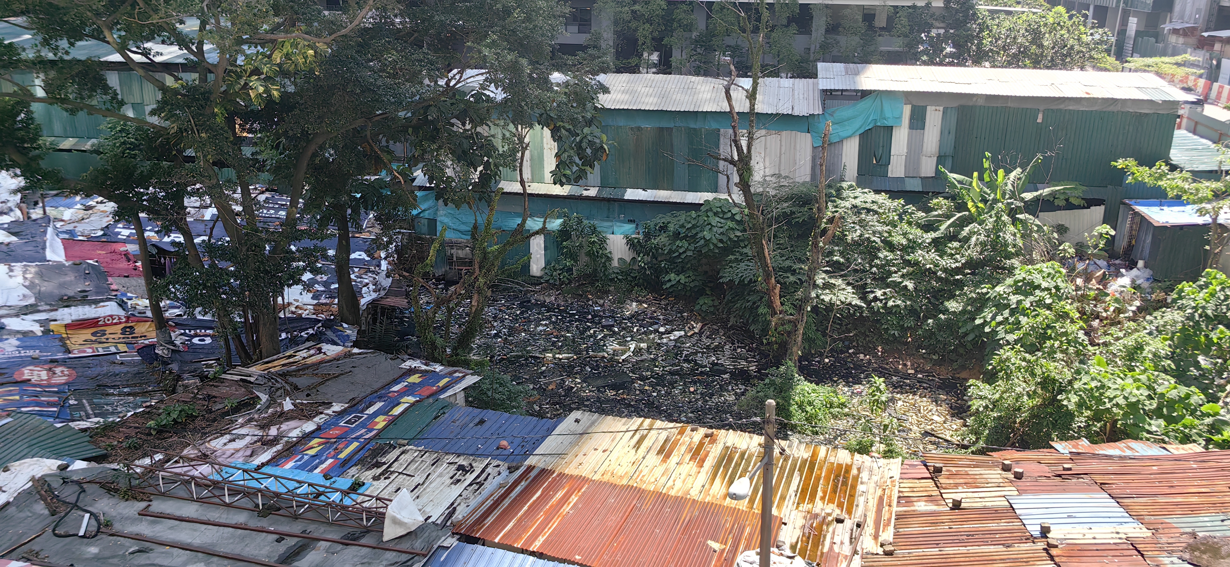 A squatter settlement has quietly taken root in the open land between the two condominiums. What began years ago has now turned into a persistent